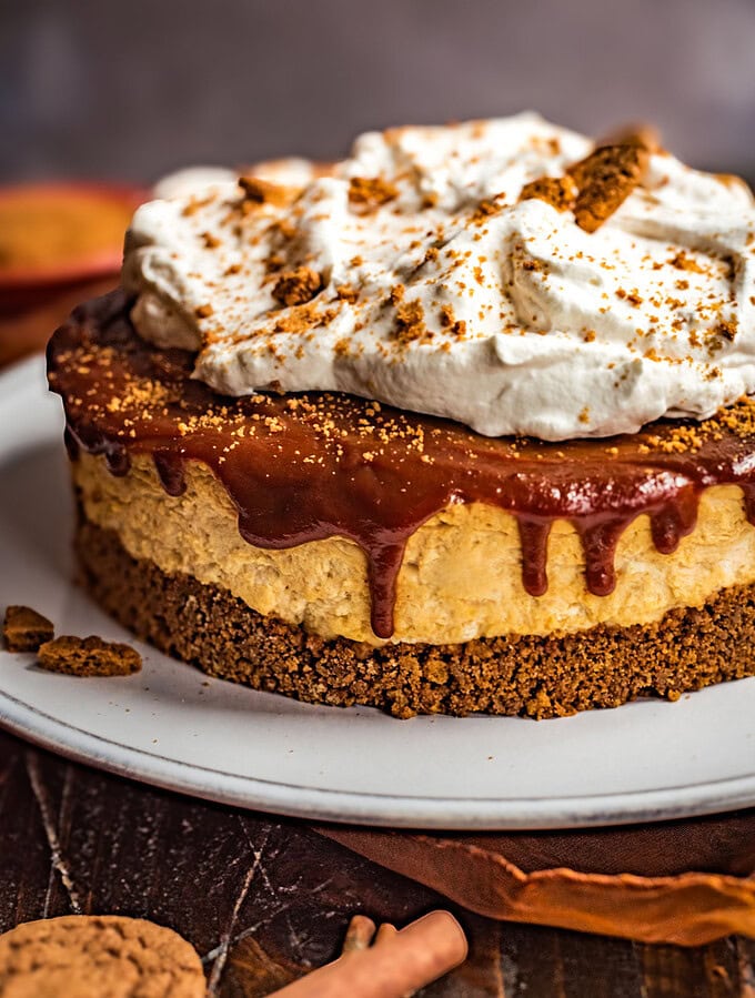 Creamy, silky, lightly spiced, and flavored with homemade pumpkin caramel, this No-Bake Pumpkin Caramel Cheesecake is the perfect Thanksgiving dessert for people who like pumpkin but don’t want to feel like they’re eating straight purée. It’s rich without being heavy, and comes together with a gingersnap crust, a fluffy cheesecake filling, and a billowy layer...